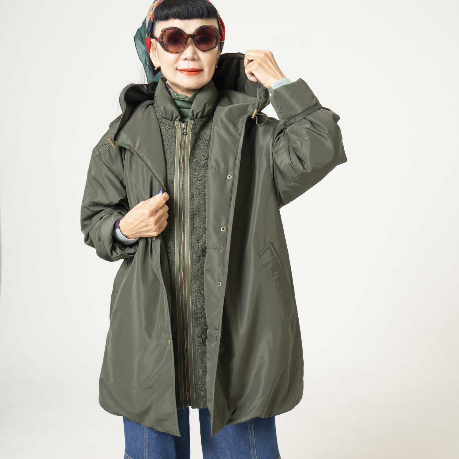 サテンの光沢感のフーディやポンチョシャツのニューフォルム、