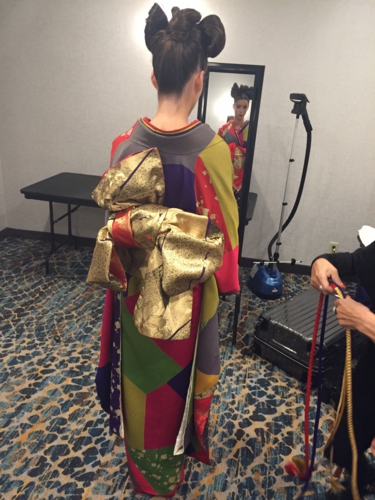 素材、色合わせ分量感のセンスが問われ、着付けが完成すると、