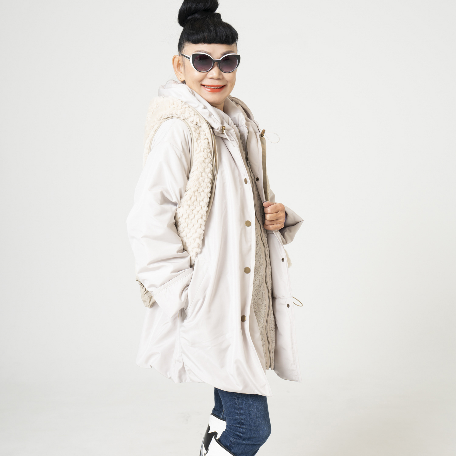 サテンの光沢感のフーディやポンチョシャツのニューフォルム、