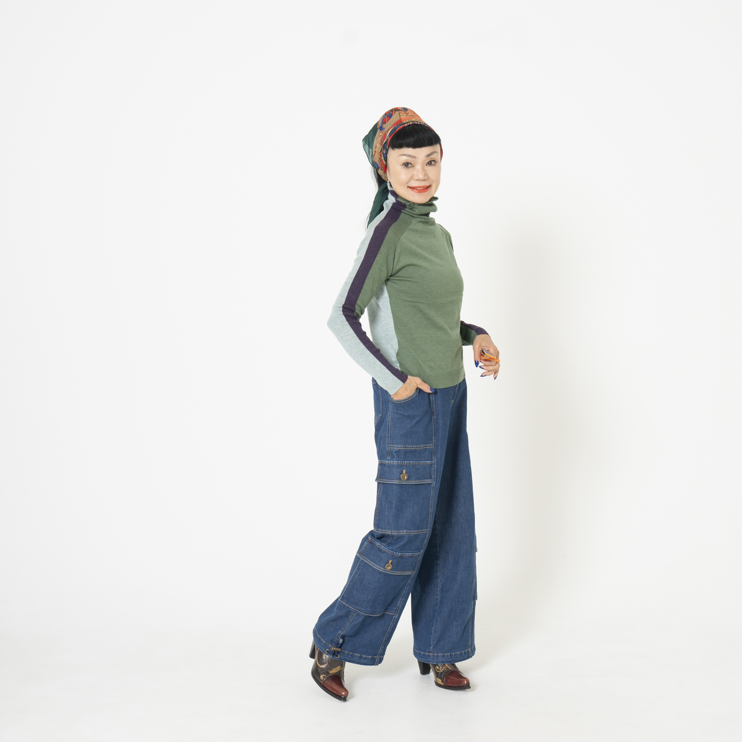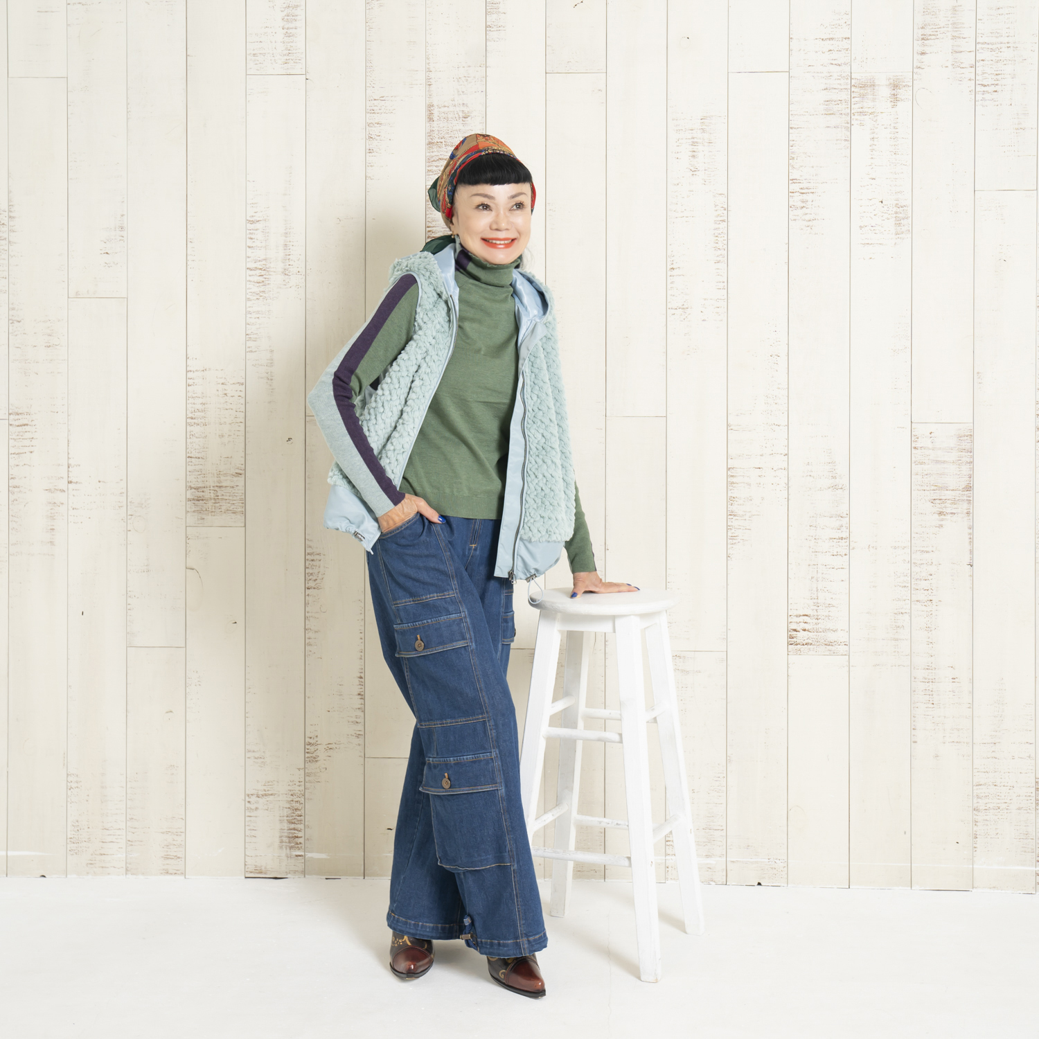 デニムのカーゴバギーパンツがスタイリッシュ!リュクス&カジュアルがテーマです。