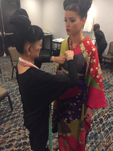 素材、色合わせ分量感のセンスが問われ、着付けが完成すると、